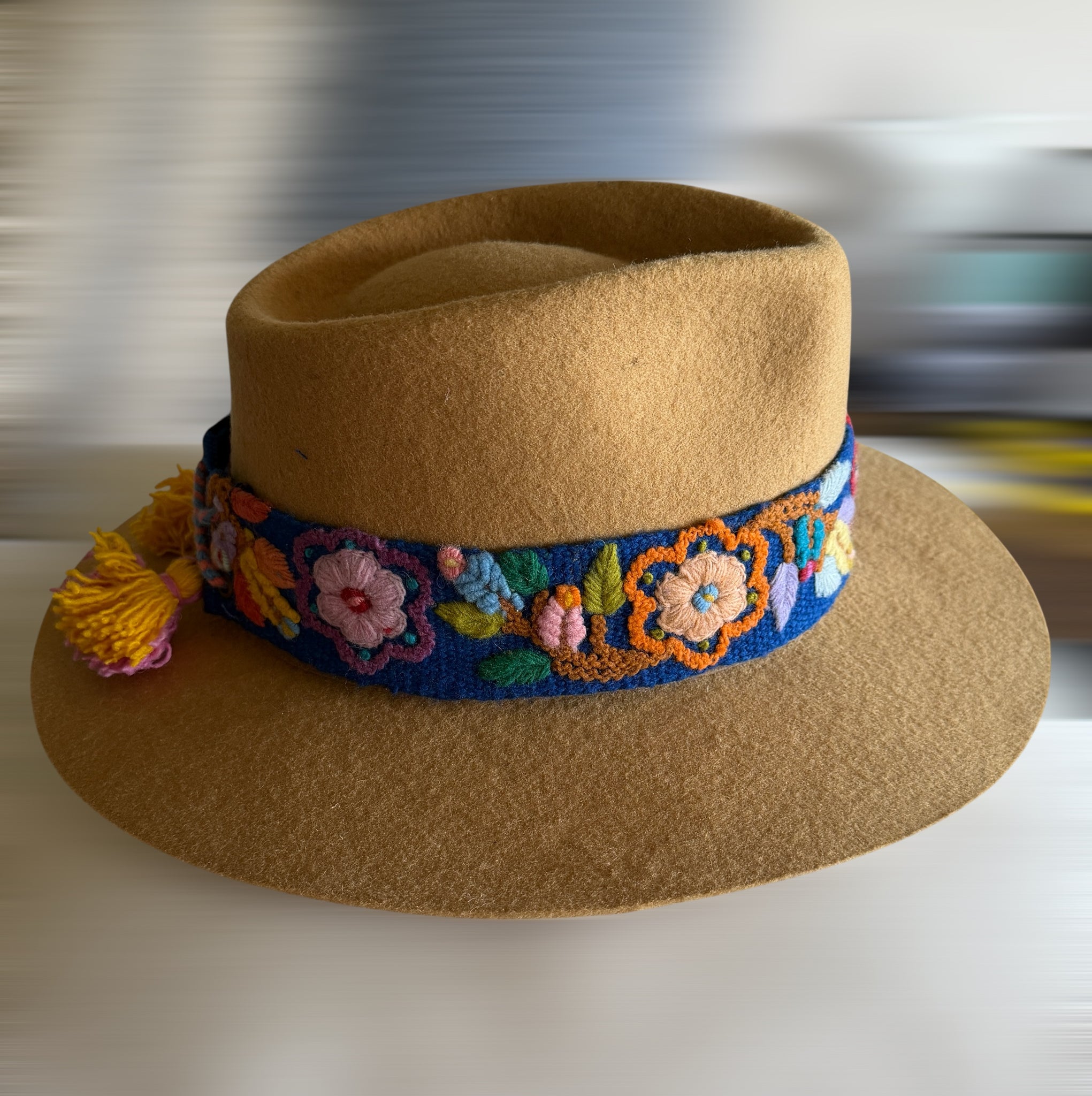 Our hat bands are unique, hand embroidered, and can be mixed and matched with multiple hats. Finished with beautiful colorful pompons, length is 24" and width 2". They are hand made by Artisans of the Andes in Peru. Each one is carefully crafted and made with LOVE!